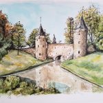 Kat (Luca) onder het dekbed Aquarel en pen